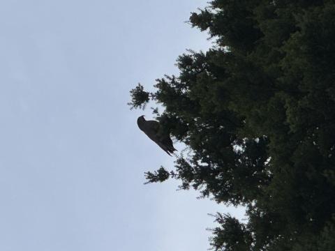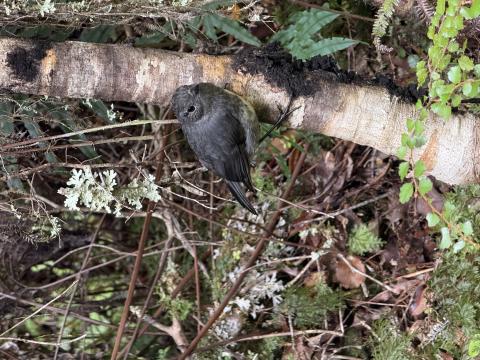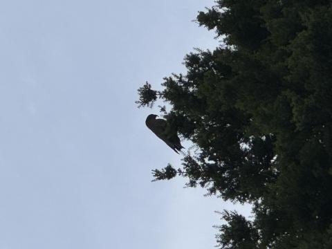 Lone kaka flew overhead whilst i was sitting by the rangers cottage. The trees obscured an band id.