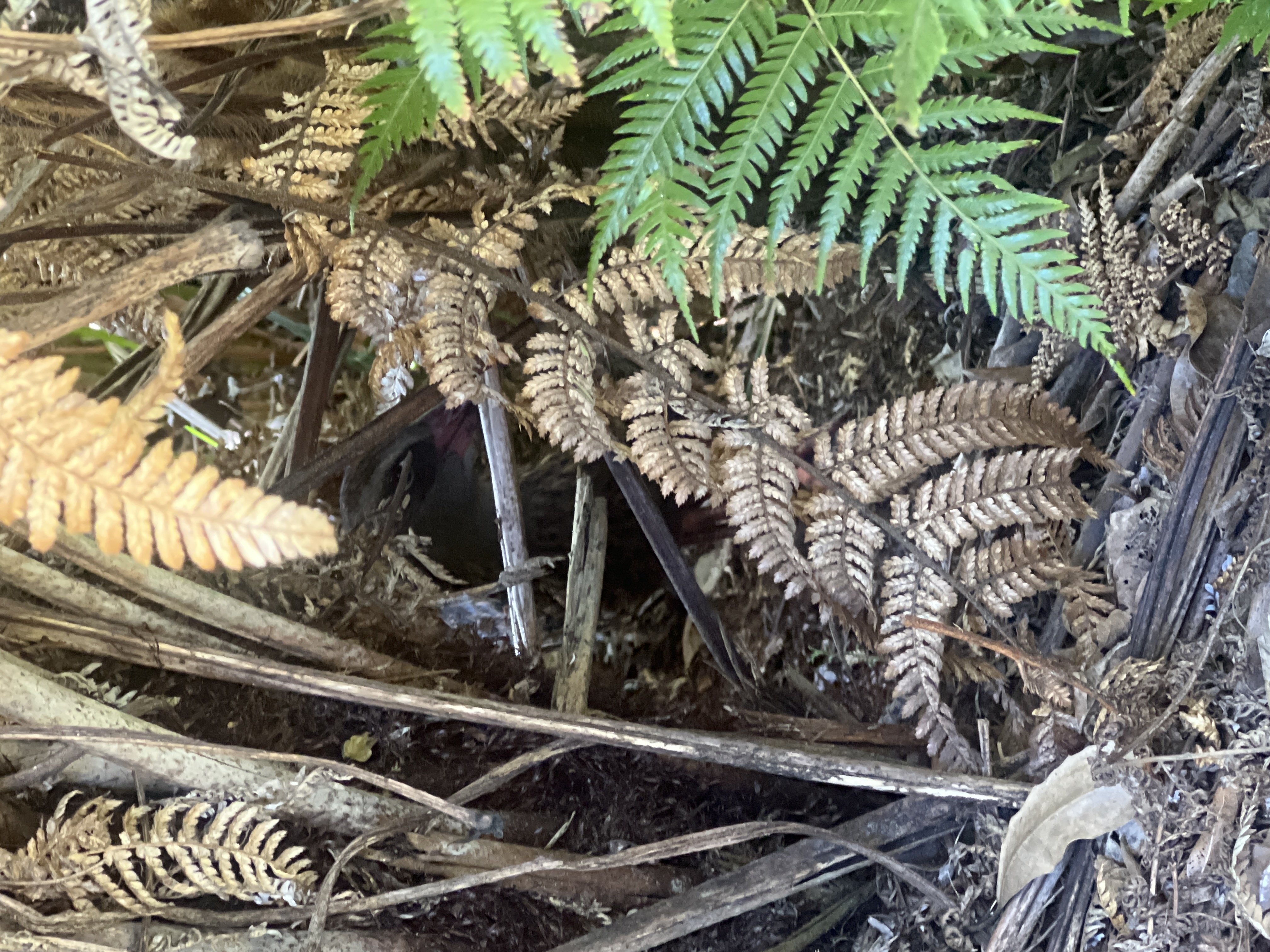 Hear a growling call from a large dark flying bird around the area of halfway pool on the Abel Tasman trail heading toward Anchorage/Torant Bay