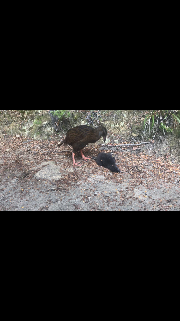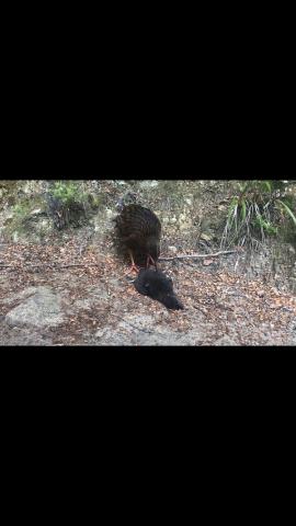 Somewhere around apple bay i think it was. We cane across a weka which we thought was carrying its chick up the steep slope. We watched it for about a minute and it ledt it and jumped up the last bit onto the track. I stepped down to pick up the chick when i realised it was a dead baby penguin that eas freshky killed as it was still warm. I put it on the track and the weka came back to try and eat it giving me an opoortunity to record it for a while. I have no way of uploading the video for ye.